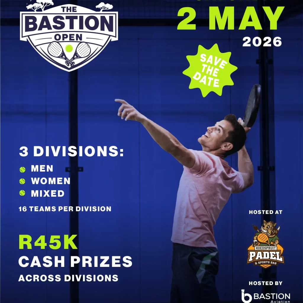 On Saturday, 2 May 2026, Bastion is bringing the heat to the court with The Bastion Open — a competitive, high-energy padel tournament hosted at Hoedspruit Padel & Sports Bar.